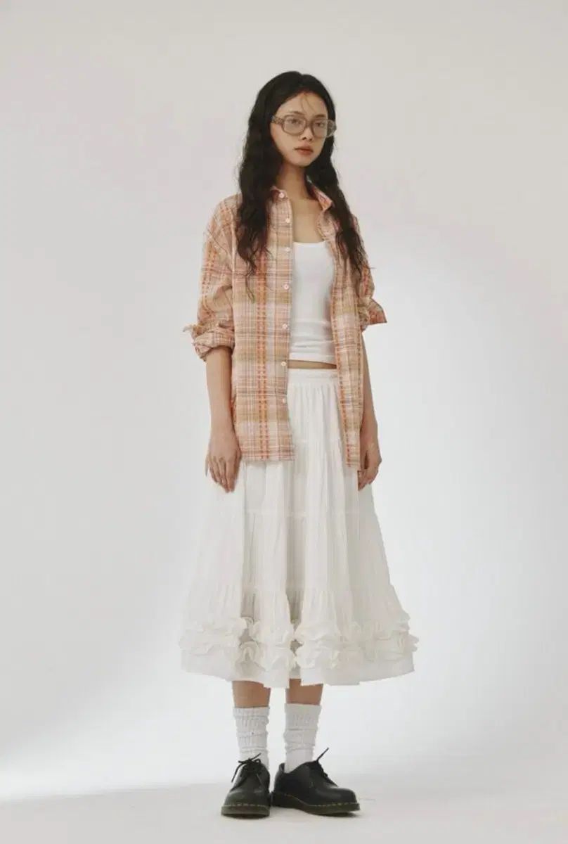 -プリーズプロジェクト花柄チェックシャツ、ピーチ