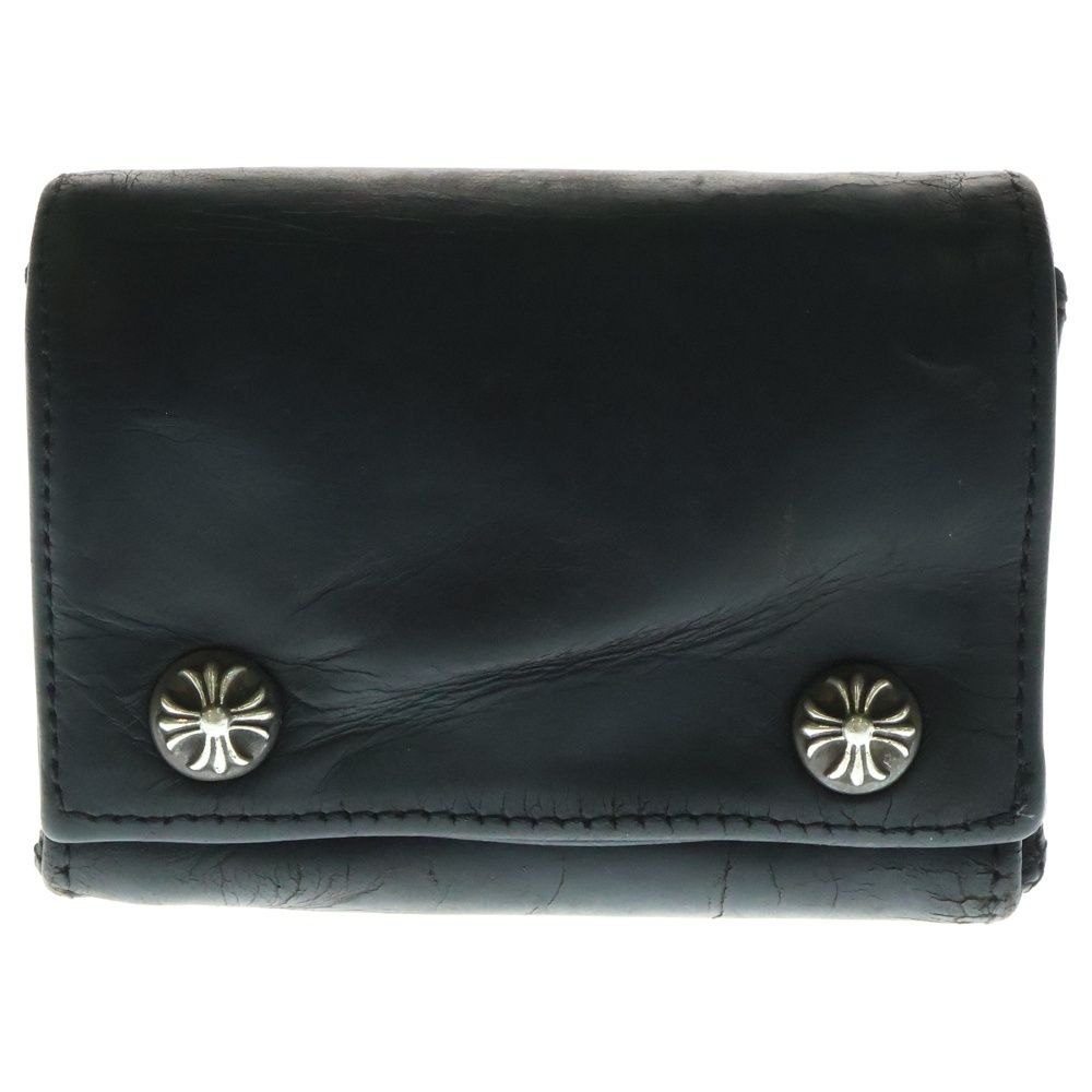 CHROME HEARTS クロムハーツ 3 FOLD 3フォールド クロスボールボタン レザーウォレット 財布 ブラック BCA 364
