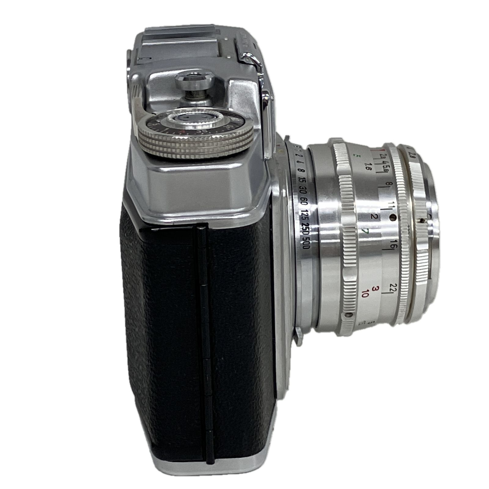 ドイツの老舗メーカーAgfaのレンズ交換式レンジファインダーカメラ、AMBI SILETTEです。セットの標準レンズ「COLOR-SOLINAR 50mm F2.8」は、3群4枚のテッサー型構成で、シャープな描写に定評があります。金属製の鏡胴が醸し出すクラシカルな質感と、ドイツ製ならではの堅実な作りが魅力の一台。コレクションや部品取りとしていかがでしょうか。