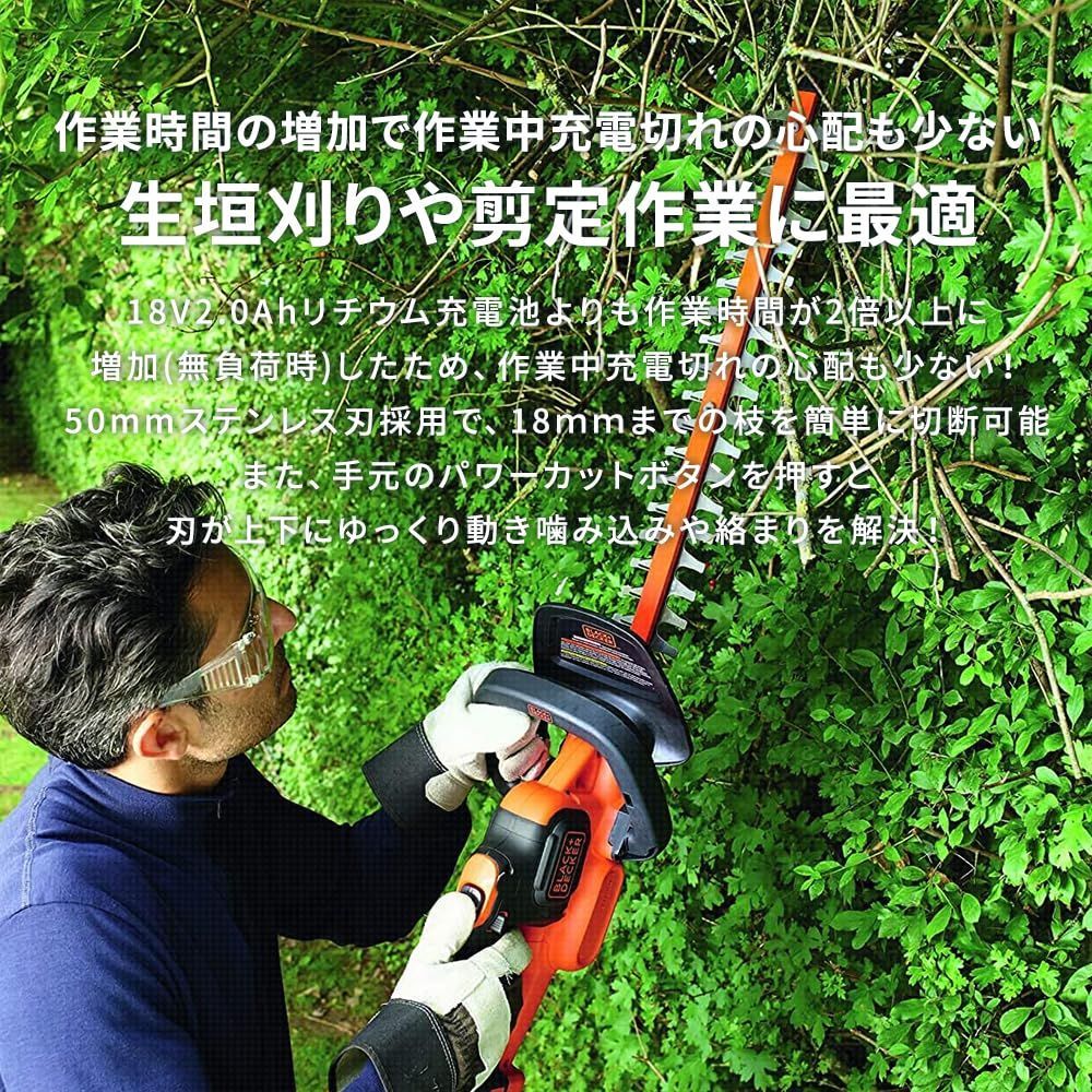 ブラックアンドデッカー コードレス ヘッジトリマー ガーデン ガーデニング 農業 園芸用機器 パワーモード 安全二重スイッチ 18V 4.0Ah バッテリー セット (収納バッグ付き) GTC18504PC