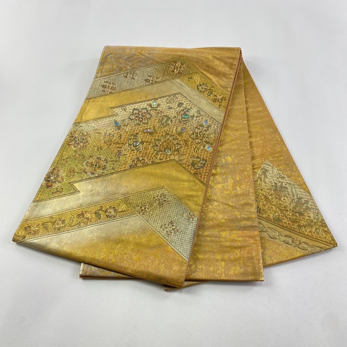 袋帯 草花 花唐草 螺鈿 金銀彩 金色 お太鼓柄 正絹