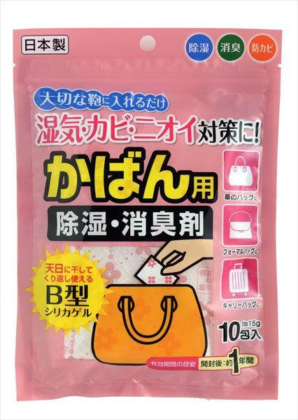 ・かばんの中にいれるだけ!・湿気をすばやく吸収、カラッと快適・湿気を吸収しても、ベトつかないから大切なカバンにも安心・くり返しつかえて経済的・かばんにこもったニオイも吸収