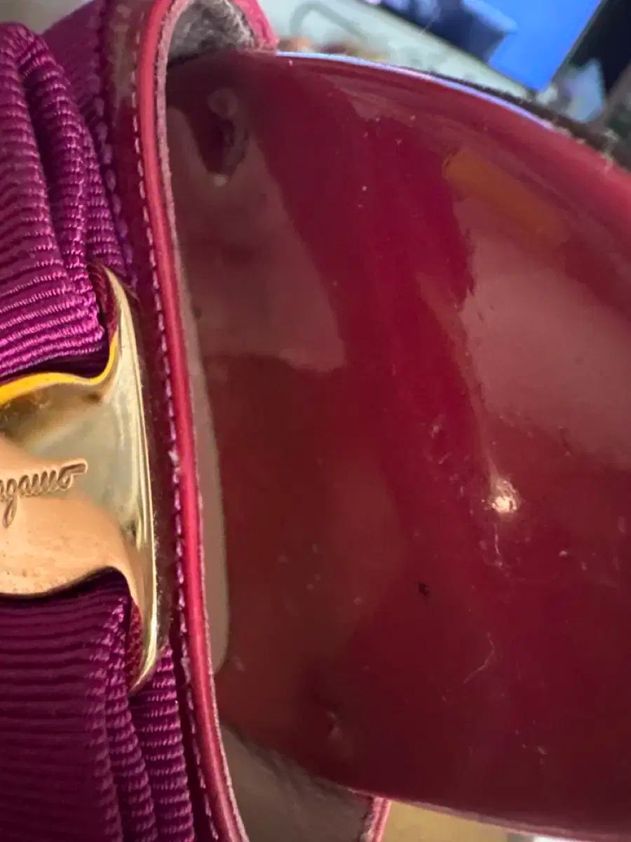 この商品は濃い赤色で、紫のリボンがアクセントになっています。とても着心地が良い