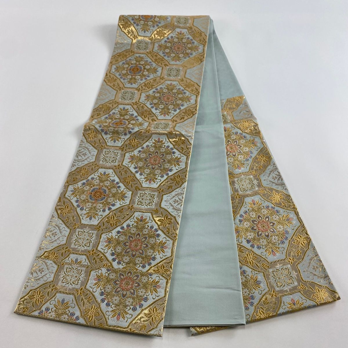 袋帯 秀品 華文 金糸 箔 薄緑 六通 正絹
