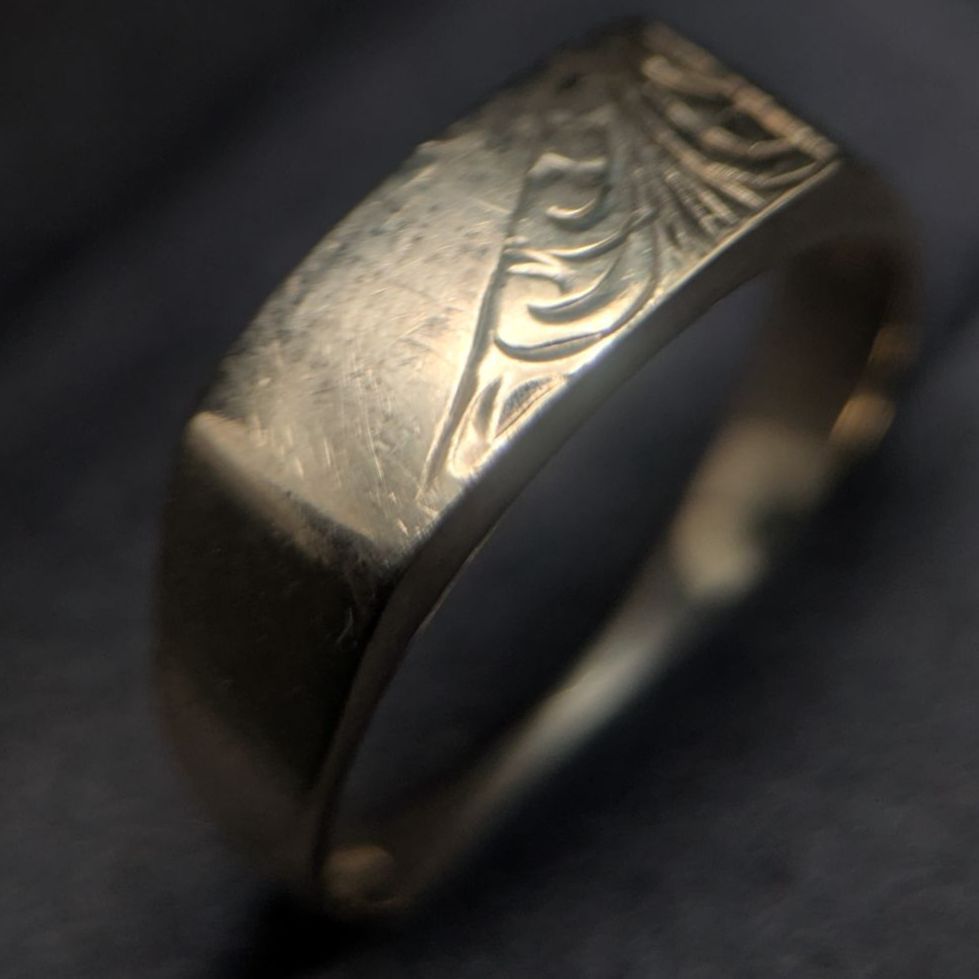 1998年に英国バーミンガムのアセイオフィスで検定を受けた、9カラットゴールド製ヴィンテージ・シグネットリングです。