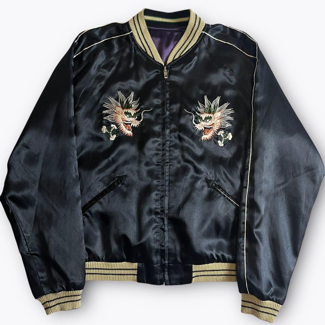▼ detail : リバーシブル スカジャン パラトルーパー×龍 ドラゴン 刺繍 パープル×ブラック