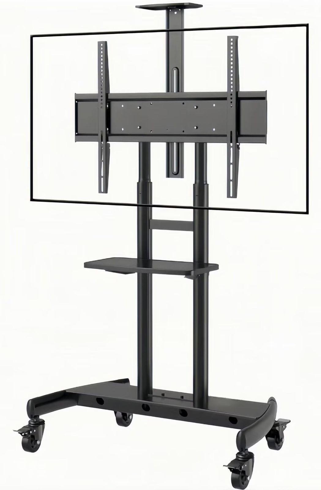 【頑丈な構造と安定感】高品質冷間圧延鋼で作られたこのテレビローリングスタンドは頑丈で耐久性があります。一体型ベースと2本柱構造を採用し、テレビを強力にサポートします。型テレビを、安定して設置できます。