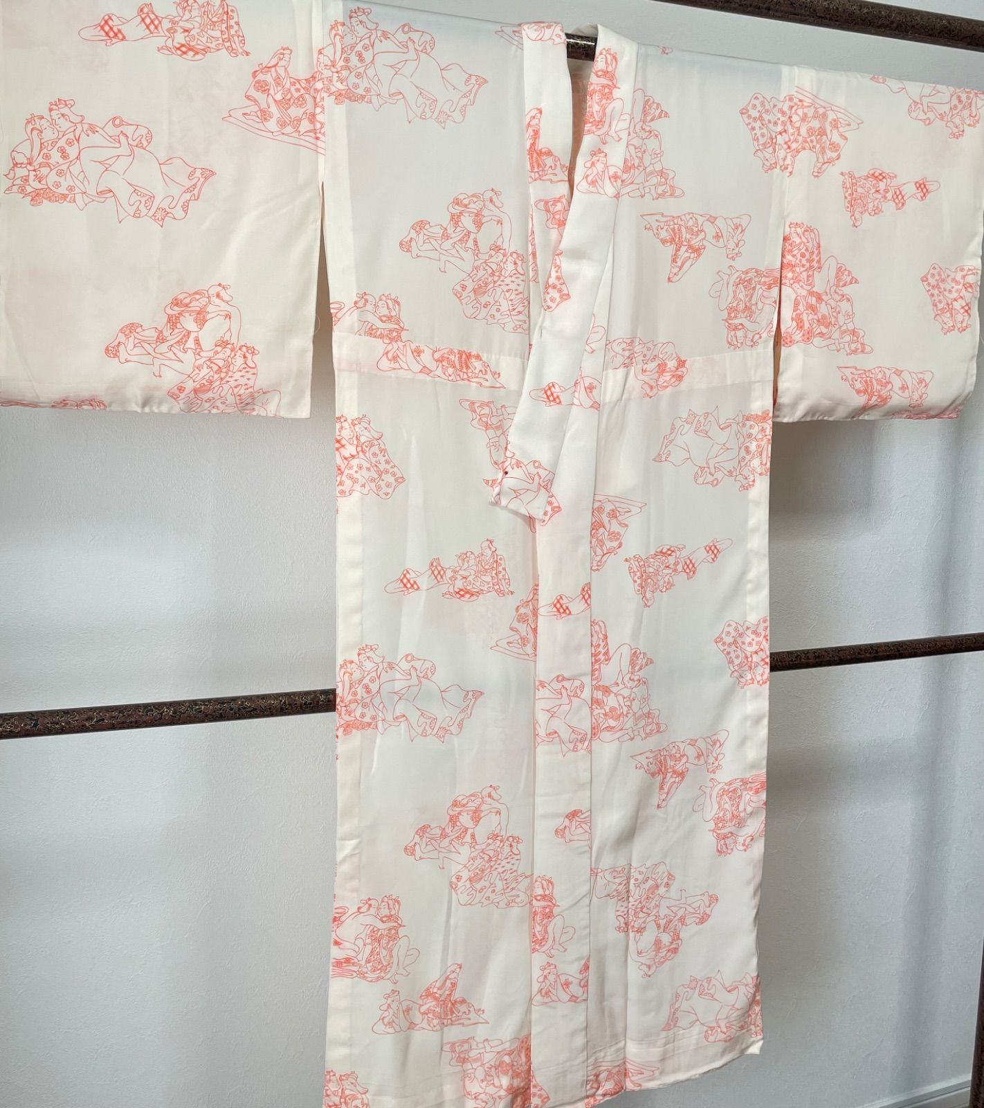美品 正絹 長襦袢 袖無双 着物 128.5㎝ 乳白色 個性的 春画 春画 艶絵 エロ 男女