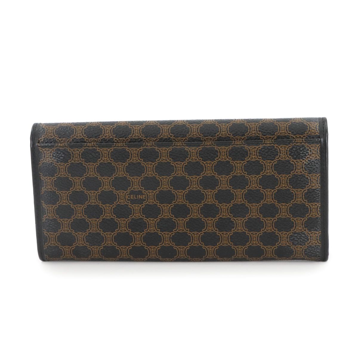 セリーヌ CELINE マカダム 二つ折り がま口 長財布 PVC レザー ブラック ブラウン ゴールド 金具 Macadam Wallet