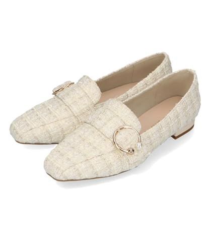Size:24.5 cm_Color:ホワイト [オリエンタルトラフィック] ローファー スクエアトゥ パール モチーフ フラット 通年 仕事用 合成皮革 シューズ レディース 42105 WHITE 24.5 cm