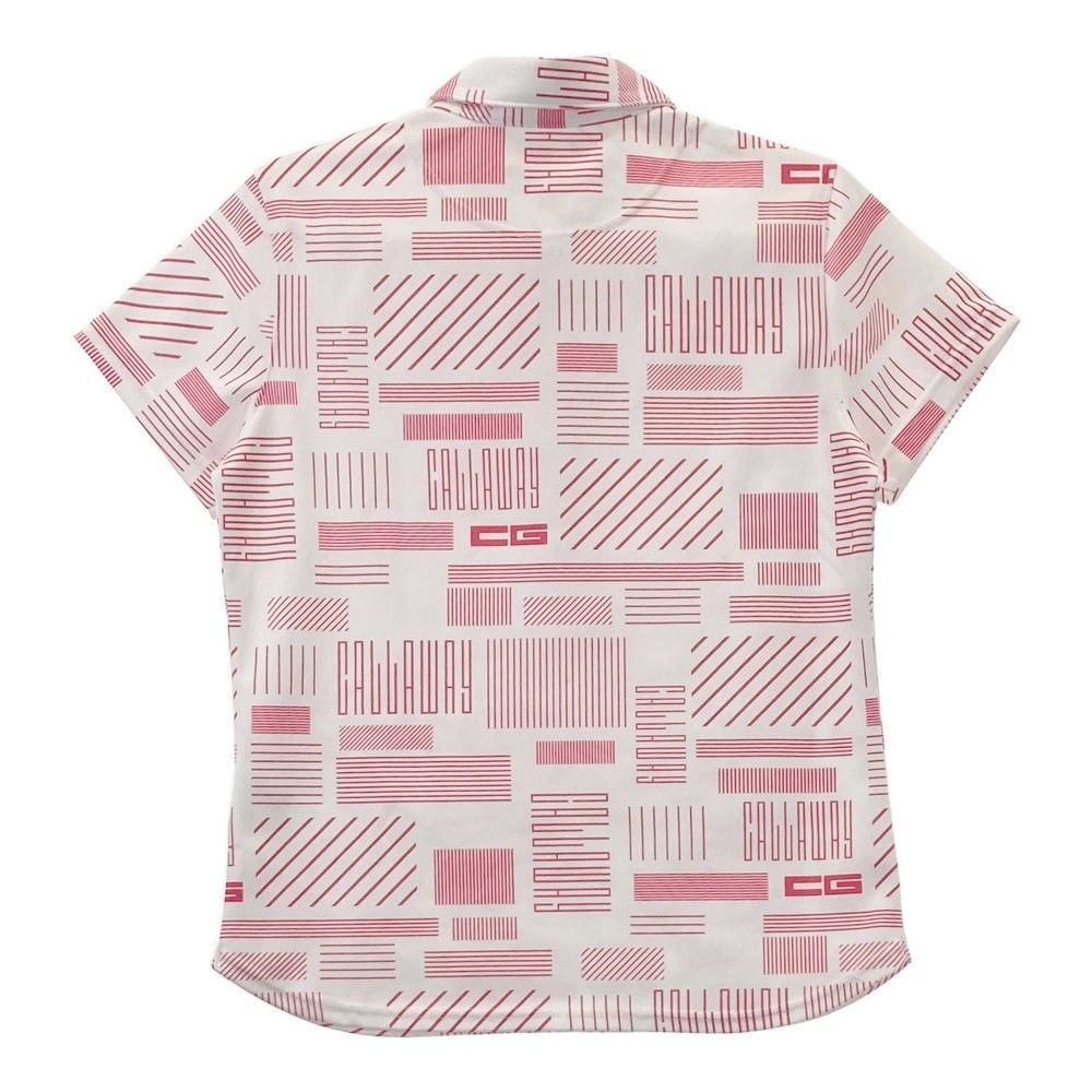 サイズ M キャロウェイ モデル レッドレーベル 半袖ポロシャツ 総柄 ホワイト系 ゴルフウェア レディース ストスト