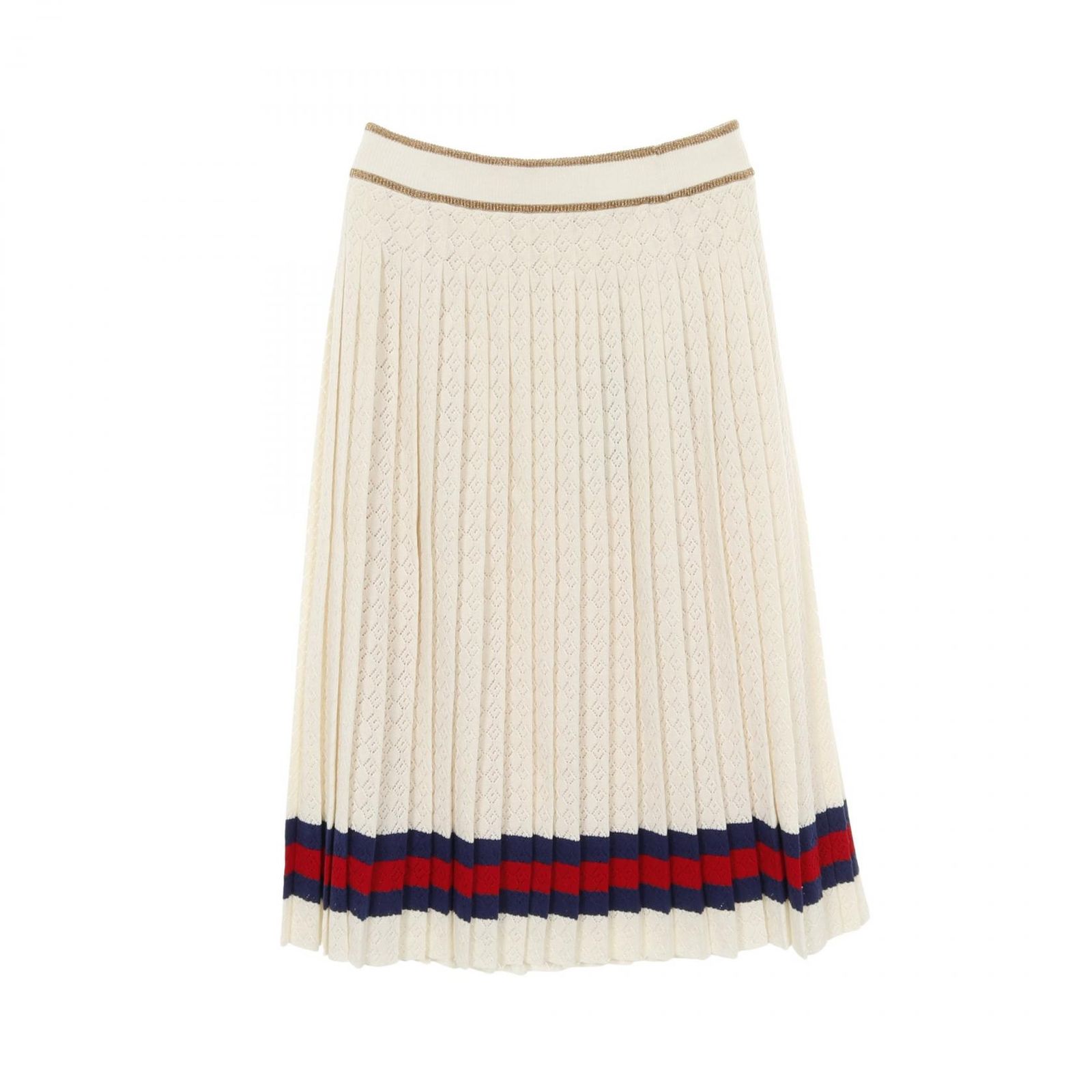 グッチ GUCCI スカート ウェブストライプ Gロンバス ニット ホワイト|レッド|ネイ コットン レディース ♥