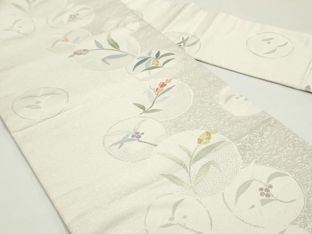 平和屋着物 九寸名古屋帯 唐織 花丸文 正絹 ob
