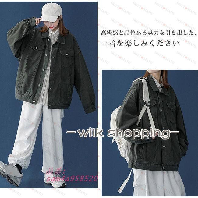 デニムジャケット レディース Gジャン 大きめ ゆったり ポケット付き 可愛い ショート丈 羽織 アウター 通学 通勤 オーバーサイズ カジュアル おしゃれ 長袖 am 4 a 958520