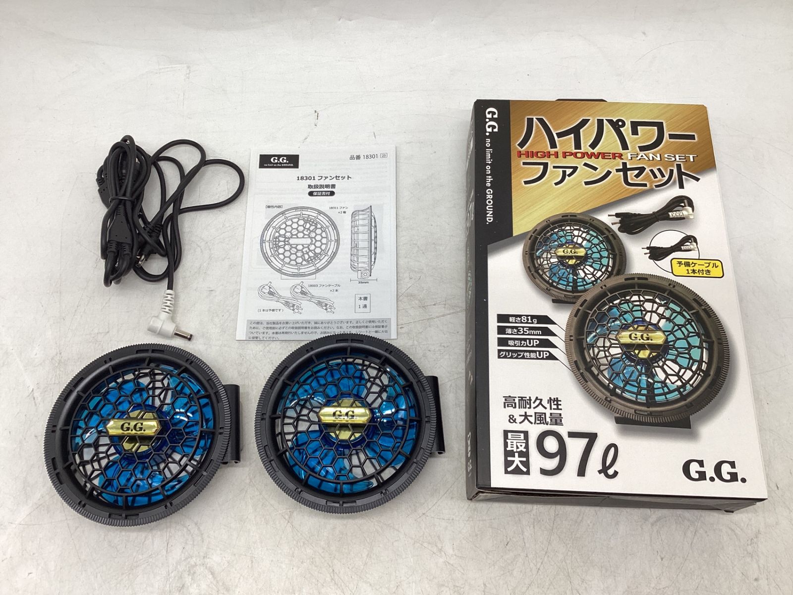 ファン本体×2個・ケーブル×2本・取扱説明書×1通 ・カラー ・重量:約81g(ファン1個)
