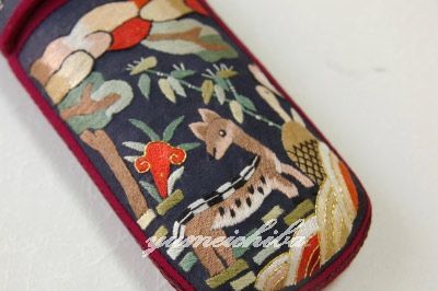 吉兆柄を施した大胆な構図がとても迫力の有る手刺繍入りのペーンケース。
