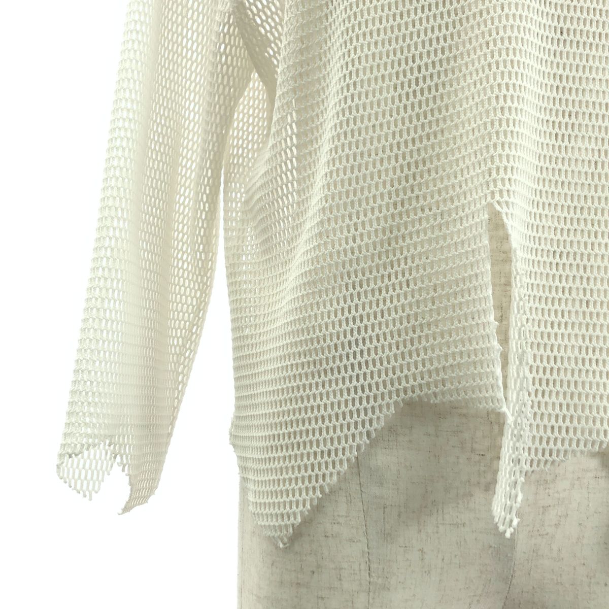BLACK COMME des GARCONS ブラックコムデギャルソン ポリエステル 変形 メッシュ クルーネック Tシャツ カットソー S ホワイト メンズ