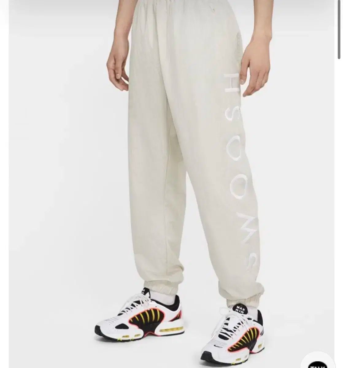 NIKE スウッシュ ウーブン パンツ 新品です。ベージュカラーに白スウッシュロゴがPOINTで入っています。L(85) サイズで、楽に着用できます。コメントなければすぐ安全決済してください!