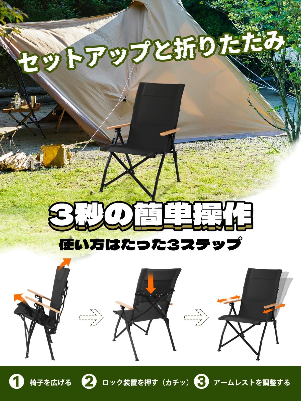 Join Nature アウトドアチェア 3段階リクライニング式 キャンプ椅子 ハイバック設計 折りたたみ椅子 耐荷重150 kg対応 コンパクト軽量 収納袋付属 キャンプ ガーデンチェア 屋内兼用 収納時 21 19 90 cmに折り畳み ブラ