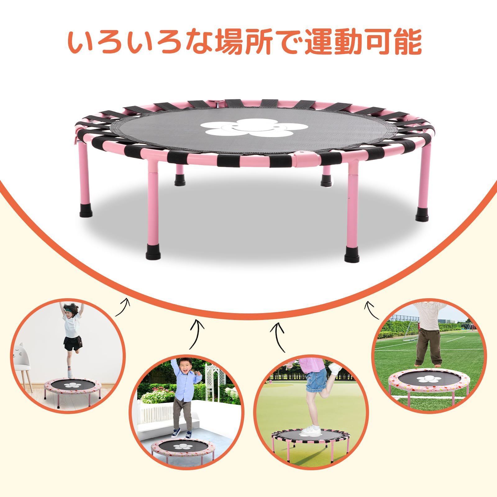 UNE トランポリン 室内 子供用 かわいい花柄 直径 95 cm とらんほりん 折りたたみ式 耐久性 床保護 フィットネス用トランポリン 6脚管安定設計 耐荷重70 kg 高弾力 カバー トレーニング エクササイズ 遊び 家庭用