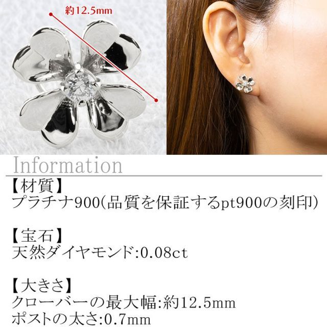 ボディピアス レディース プラチナ クローバー 花 ダイヤモンド ピアス 片耳 キャッチのいらないピアス つけっぱなし 金属アレルギー 安心 pt 900 フラワー 四つ葉 キャッチナッシャー 簡単装着 ジュエリー 普段使いとして エレジャス