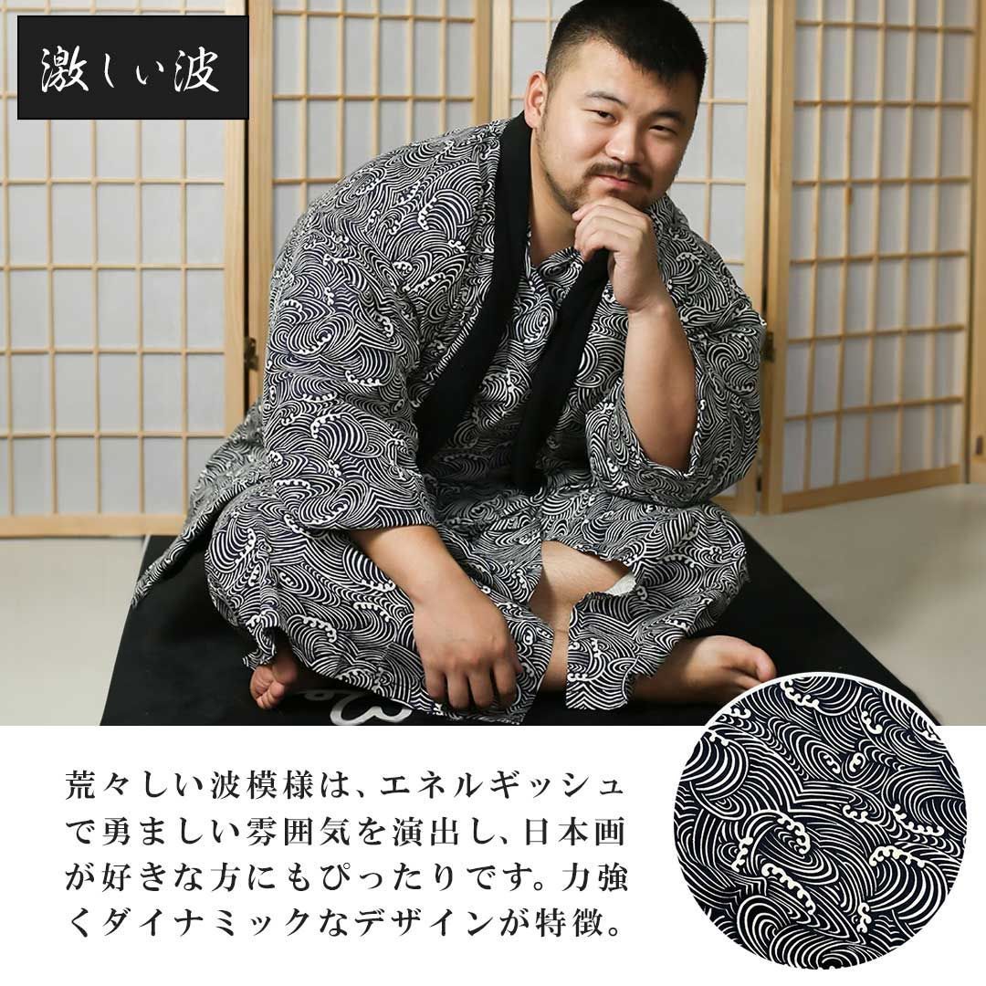 浴衣 メンズ 荒波 武士スタイル 全2種類 模様 青海波or激しい波 帯ランダム 夏 男 ゆかた 和服 紳士 浴衣セット 男性浴衣 ゆたか レトロ 帯セット 下駄 黒 夏コーデ 着物 部屋着 お祭り 花火大会 プレゼント ワンタッチ帯 ゲタ 扇子 一人で着れる