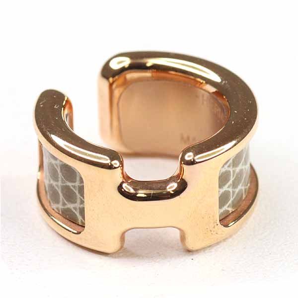 エルメス HERMES イヤーカフ オランプ PM イヤリング リザード メタル グレージュ系 ローズゴールド Aランク