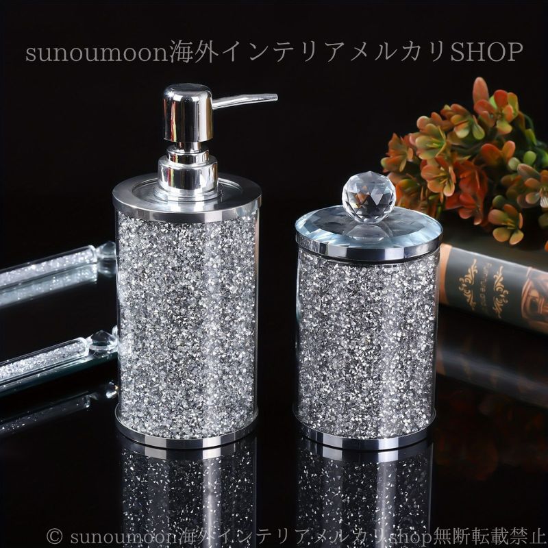 ポンプボトル ディスペンサー ソープディスペンサー 3点セット キラキラ ガラス ハンドソープ用 詰め替え 小物入れ トレイ ホテルライク 4 7