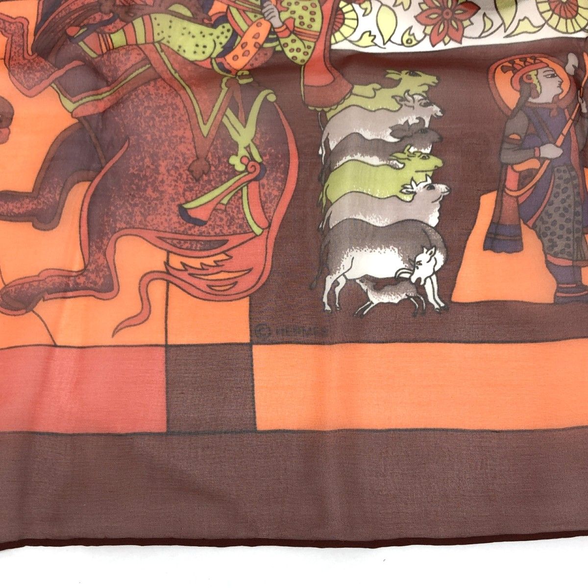 HERMES エルメス スカーフ シースルー 眩惑のインド fantaisies indiennes シルク100% オレンジ レディース