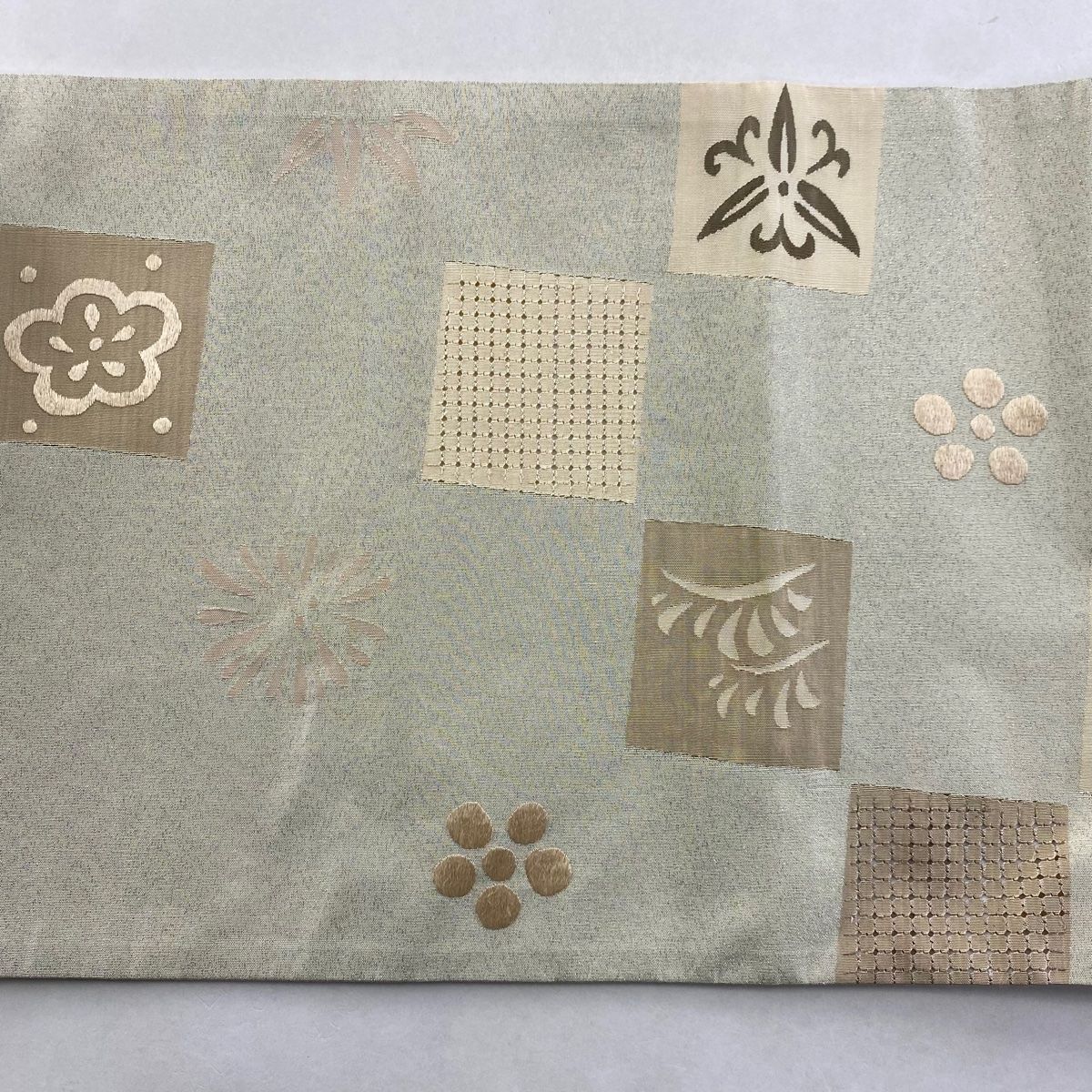 袋帯 松竹梅 変わり市松 刺繍 箔 ベージュ お太鼓柄 正絹
