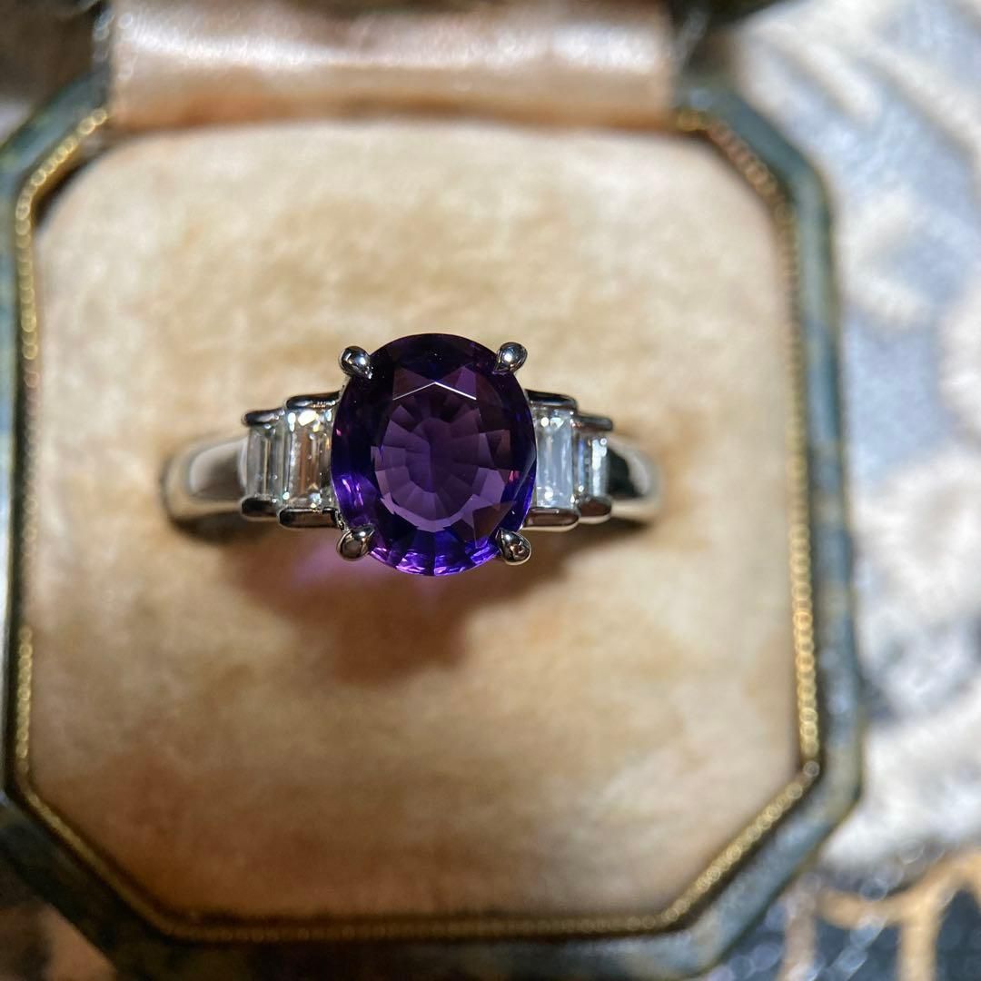 pt 900 非加熱 劇的 チェンジサファイア 2.498 ct ダイヤモンド リング 指輪|鑑別書付き