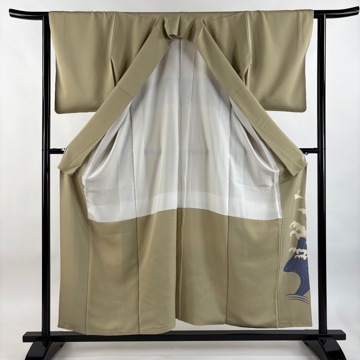 色留袖 身丈155 cm 裄丈62 S 袷 落款 鶴 波頭 金糸 金彩 薄黄土色 正絹 秀品 一つ紋