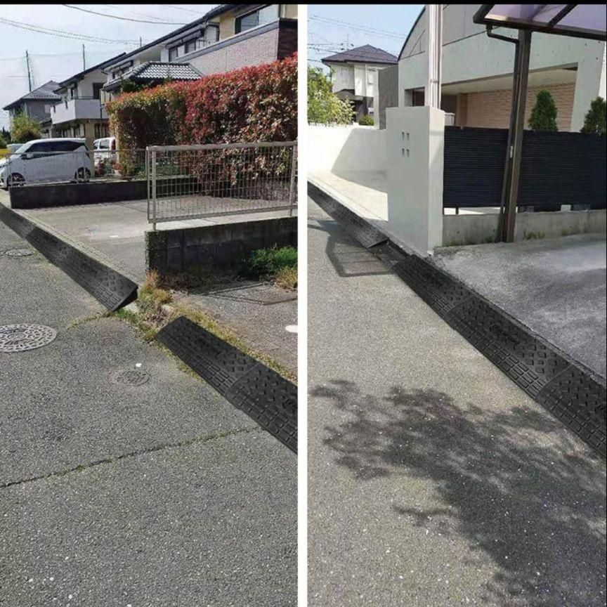 4:段差プレートは、段差がある場所に設置し、スロープ状にできるアイテムです。段差解消ブロックや、段差ステップと呼ばれることもあります。駐車場やガレージ、玄関前など様々な場所に使われ、車や自転車、ベビーカー、台車などの移動をスムーズにできます。