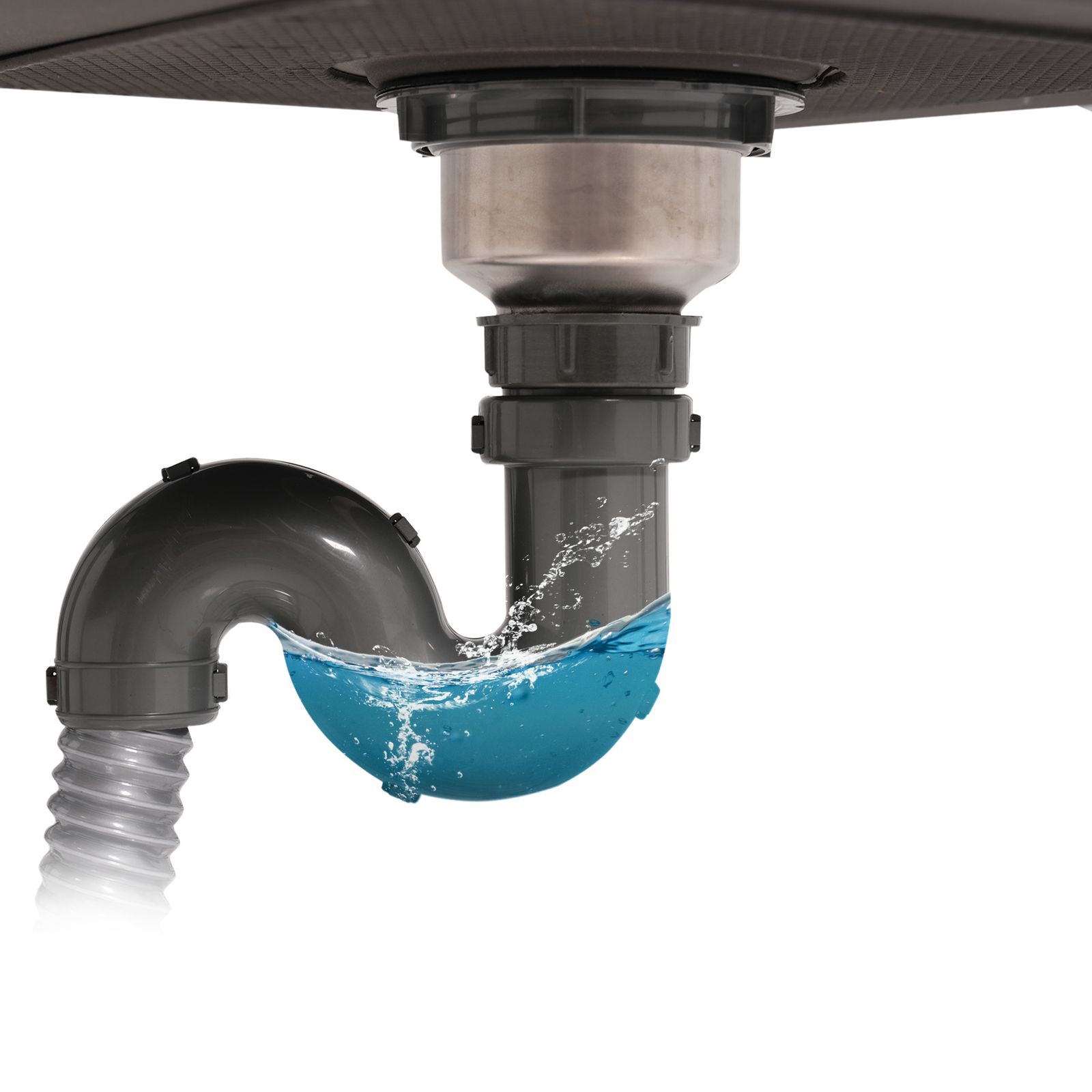 ◎06【匂いやサビが発生しにくい設計】汚れに強く、匂いが残りにくい構造で、清潔にお使いいただけます。(防水シーりングカバー)(ごみ受けカゴ)(ステンレスカップ本体)(上部ゴムリング)(下部ゴムリング)(ABSプラスチックナット)【S字トラップで匂い・虫をブロック】排水にS字トラップを採用し、下水の匂いや虫の侵入を防ぎます。