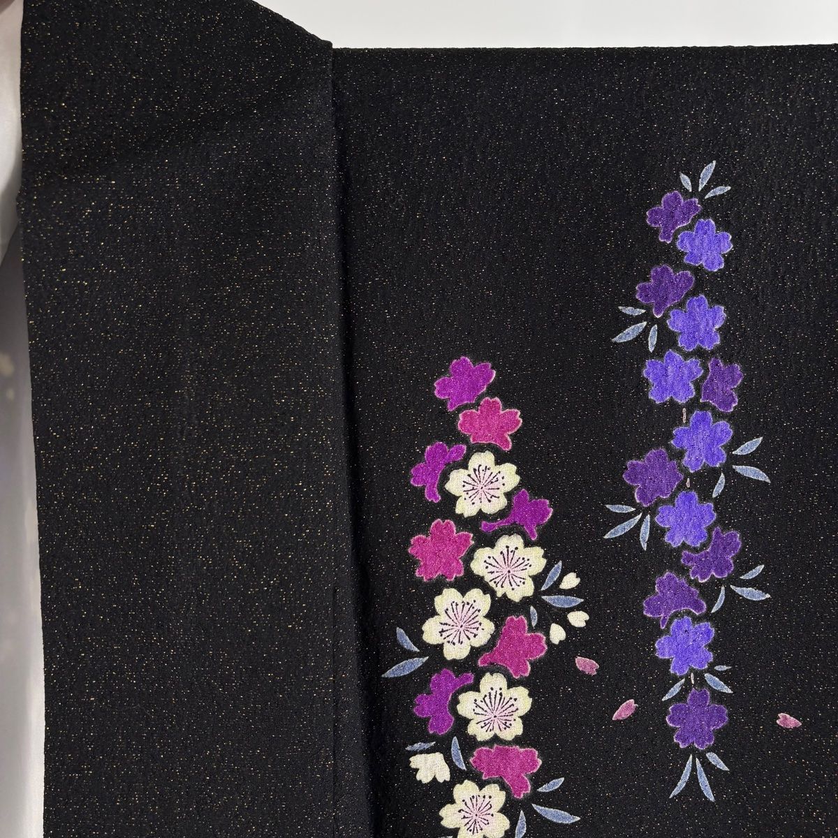 振袖 身丈170 cm 裄丈71 L 袷 落款 桜 流水 金通し ぼかし 黒 正絹