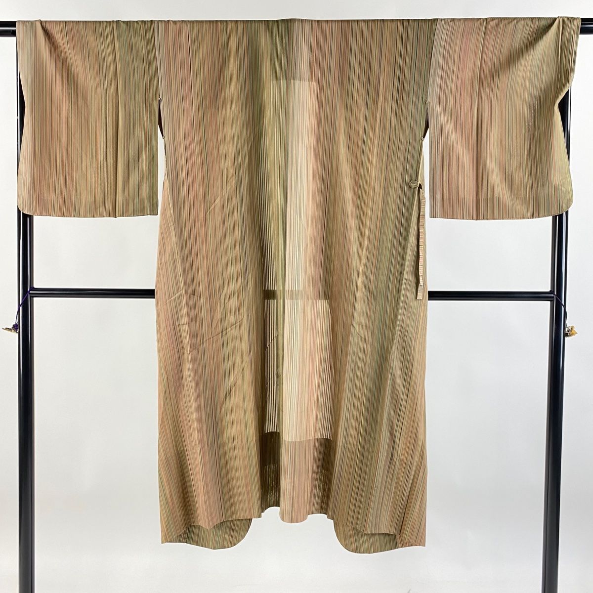 道中着 身丈125 cm 裄丈68.5 L 和装コート 着物衿 縦縞 鶯色 正絹