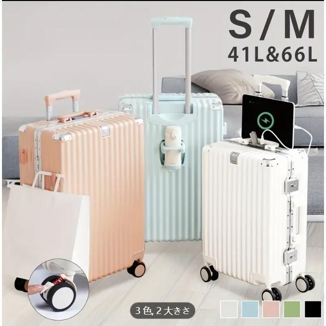 S|Mサイズ フレームタイプ ハード USBポート カップホルダー付き おしゃれ 大容量 多収納ポケットスーツケース キャリーケース 6 販売