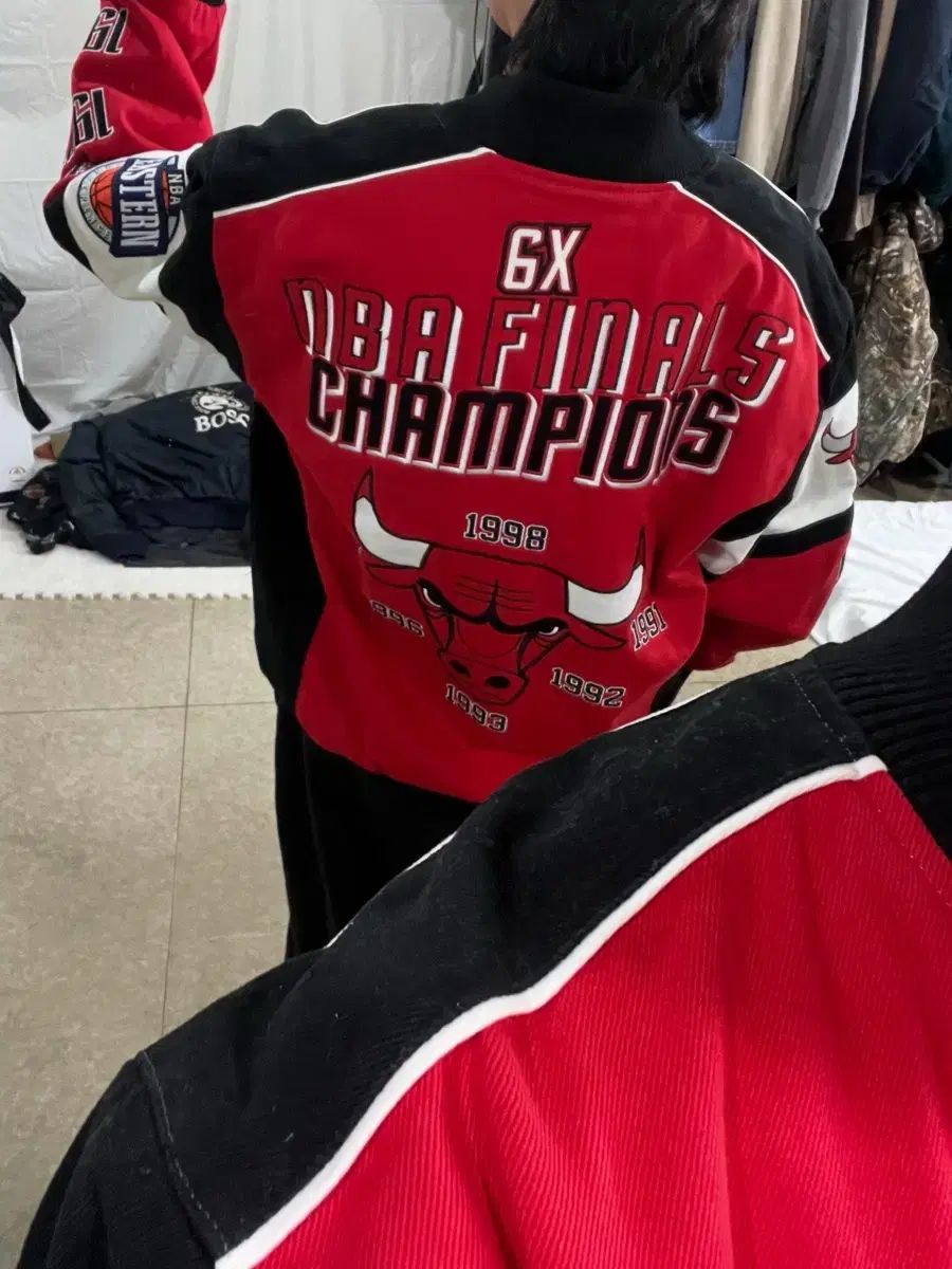 90年代バスケットボールの伝説、シカゴ・ブルズの6回ファイナル優勝を記念するスタジアムジャケットです。