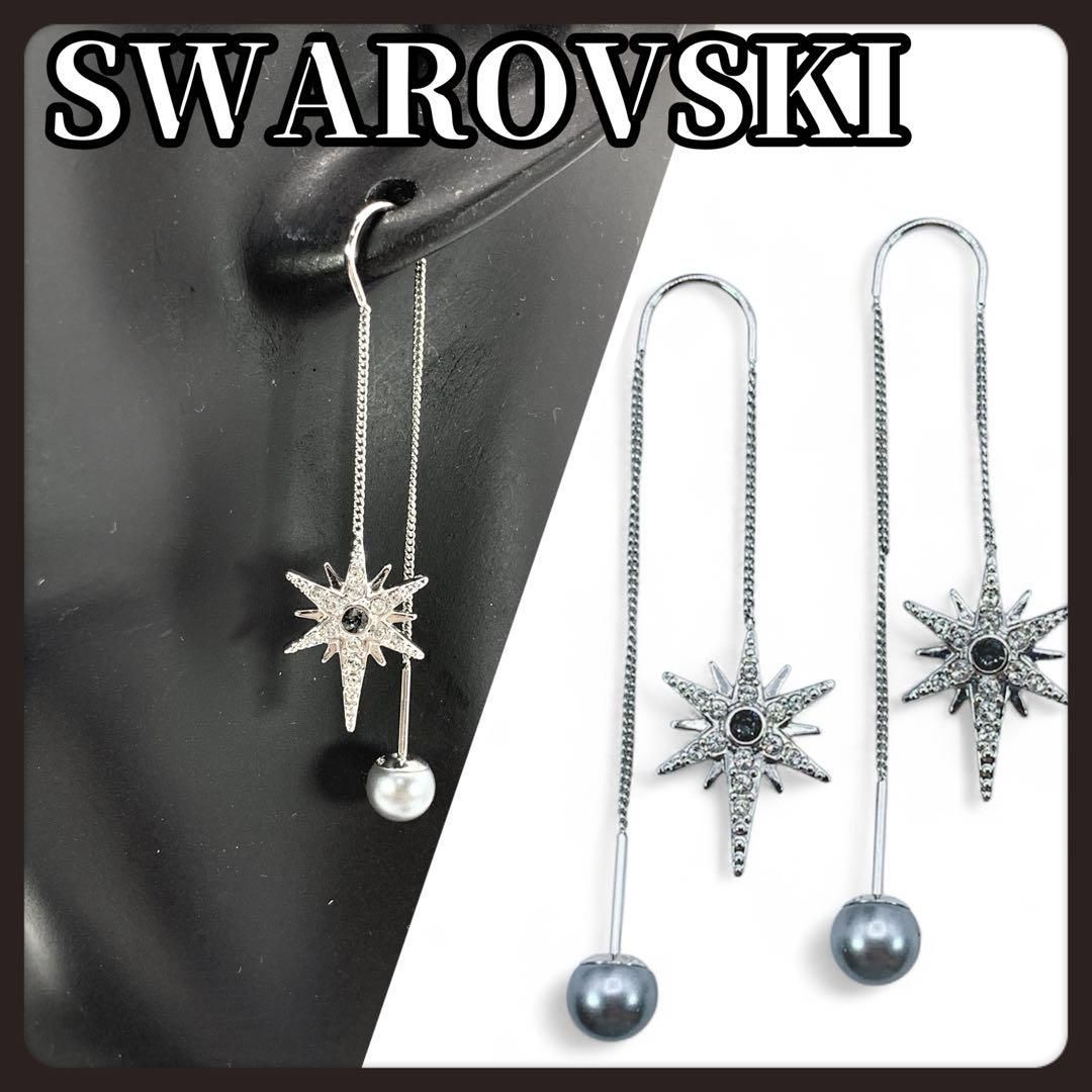 スターとパールが揺れるお洒落なデザインが魅力的なスワロフスキーロングピアスです✨