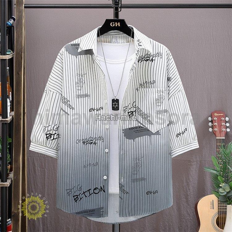 セットアップ メンズ 上下セット 夏 半袖 半袖シャツ 大きいサイズ ハーフパンツ アロハシャツ ストライプ グラデーション
