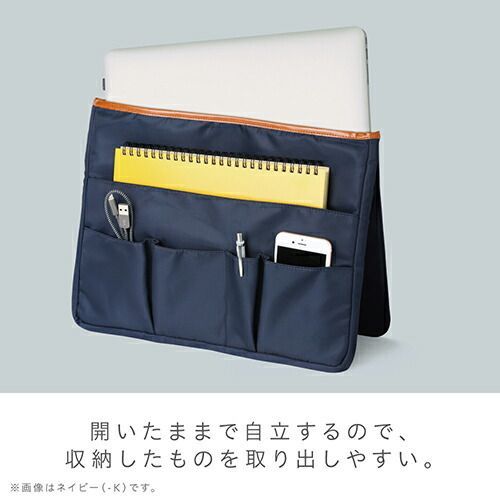 マグネットでピタっと安定。あっという間にすっきりスタンド!ワークスペースをすぐに展開することができます。開いたままで自立するので、収納したものを取り出しやすい。上部に取っ手が付いているので持ち運びやすく、落としにくい。メインの収納部分の裏生地はディスプレイの傷つきにくいやわらかい素材。ポケット小には、モバイルケーブルなどを収納できます。ポケット大には、A4クリアファイルが収納できます。13.3インチまでのノートPC、タブレットを収納することができます。【検索ハッシュタグ】#ソニック#バッグインバッグ#収納#ユートリム#ブリッジ#グレー#灰ジュ