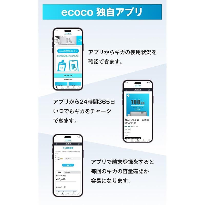 ecocoの液晶画面付、給電型ポケットWiFiです。 (GBの有効期限はご利用開始日から1年間となります。) GBがなくなったら専用サイトよりおかわり(追加購入)可能! セットで付いてくるGBは1年間のみご利用できるものとなります。 ご利用開始日より1年間で100GB使い切らなかった場合、翌年への引継ぎはシステム上出来かねますのでご了承ください。 1年後にお客様のご都合に合わせGBをおかわり(GB追加購入)をご利用ください。 おかわり(追加購入)の上限はございません。