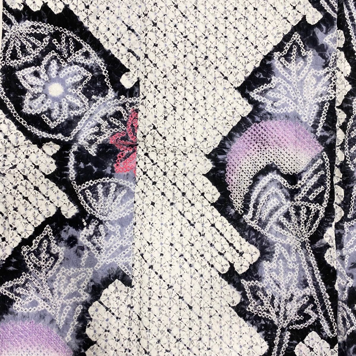 浴衣 身丈155 cm 裄丈65 M 絞り浴衣 団扇 草花 灰白 綿
