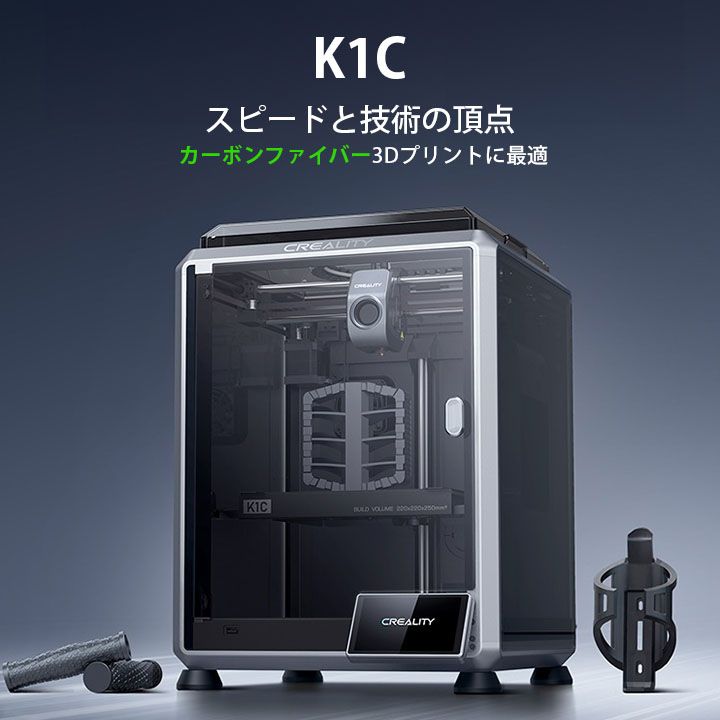 CF/GF入りフィラメントも造形可能!造形速度最大600mm/sの超高速3Dプリンター【K1C】が登場。 300℃対応のホットエンド・硬化鋼ノズルと全金属製エクストルーダーの搭載で、カーボンファイバーやグラスファイバー混合のフィラメント、そしてABSやASA、PCといった難造樹脂も造形可能。